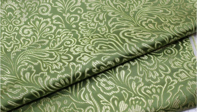 Green Brocade Fabric By The Yard Wedding Dress Jackets Indian Blended Banarasi Dress Material Sewing Cushion Cover Home Decor Diy Crafting
